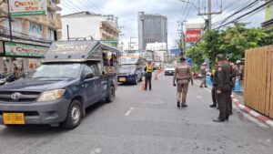 หลังเสร็จสิ้นการประชุม เจ้าหน้าที่ตำรวจจราจร สภ.เมืองพัทยา ร่วมกับ เจ้าหน้าที่สำนักงานขนส่งจังหวัดชลบุรี สาขาอำเภอบางละมุง ได้ลงพื้นที่ตั้งด่านตรวจสอบรถสาธารณะบริเวณหน้าศูนย์การค้าเซ็นทรัล พัทยา บีช ฝั่งถนนสายสอง โดยเน้นการตรวจสอบใบอนุญาตขับขี่ว่า ตรงกับประเภทการให้บริการหรือไม่ รวมถึงการกวดขันรถที่จอดในที่ห้ามจอด หรือกีดขวางการจราจร เพื่อบรรเทาปัญหารถติด และเสริมสร้างระเบียบวินัยจราจรในพื้นที่เมืองพัทยา