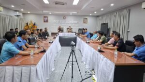 เมื่อเวลา 16.46 น. วันที่ 18 สิงหาคม 2568 ณ ห้องประชุม ศปก. สถานีตำรวจภูธรเมืองพัทยา พ.ต.ท.ภาณุพงศ์ นิ่มสุวรรณ สารวัตรจราจร สภ.เมืองพัทยา พร้อมด้วย นายวัชรพงษ์ พรหมชาตรี นักวิชาการขนส่งปฏิบัติการ สำนักงานขนส่งจังหวัดชลบุรี สาขาอำเภอบางละมุง เป็นประธานการประชุมหารือแนวทางการควบคุม และกำกับดูแลการให้บริการรถสาธารณะในพื้นที่เมืองพัทยา