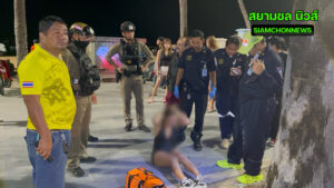 เมื่อมาถึงโรงพัก ฝ่ายสามีชาวต่างชาติยินยอมชดใช้ค่าเสียหายจนเป็นที่พอใจทั้งสองฝ่าย แต่ในขณะนั้น น.ส. บีซึ่งยังอยู่ในอาการมึนเมา เกิดความอับอายและน้อยใจสามี จึงวิ่งข้ามถนนพุ่งลงทะเลต่อหน้าต่อตา เจ้าหน้าที่และพลเมืองดีต้องช่วยกันวุ่น
