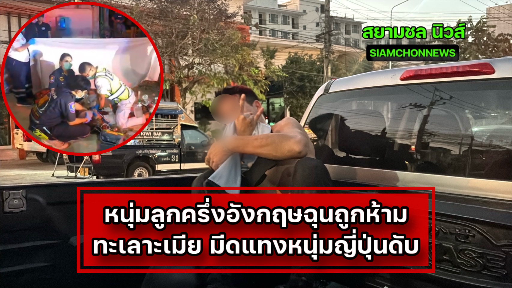 ที่เกิดเหตุพบ MR.SEITA TANABE อายุ 27 ปี สัญญาติญี่ปุ่น ถูกอาวุธมีดแทงเข้ากลางหน้าอก ได้รับบาดเจ็บสาหัส นอนจมกองเลือด มีพลเมืองดีพยายามเรียกให้ได้สติ โดยเจ้าหน้าที่กู้ภัยฯให้การช่วยเหลือปฐมพยาบาลเบื้องต้น พร้อมกับปั้มหัวใจเพื่อยื้อชีวิต ก่อนเคลื่อนย้ายส่งโรงพยาบาลอย่างเร่งด่วน ส่วนคู่กรณีทราบชื่อคือ นายเดวิด แม้นศิริ อายุ 36 ปี ลูกครึ่งไทยอังกฤษ ได้รับบาดเจ็บปูดบวมที่ใบหน้า ถลอกตามร่างกาย เสื้อฉีกขาด อยู่ในอากาศมึนเมาสุราอย่างหนัก เจ้าหน้าที่ควบคุมตัวไว้ได้ซึ่งเจ้าตัวยังไม่มีทีท่าสลด ยังคงยกมือโชว์สัญลักษณ์ ไอเลิฟยู ให้กับเจ้าหน้าที่ ในที่เกิดเหตุยังพบอาวุธมีดพกที่ใช้ก่อเหตุตกอยู่จึงเก็บไว้เป็นหลักฐาน